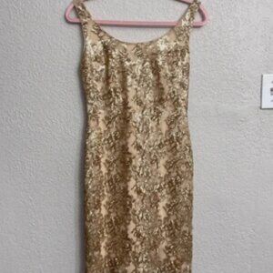 Lauren Ralph Lauren Gold Sequin Sheath Cocktail Formal Midi Dress Size 2