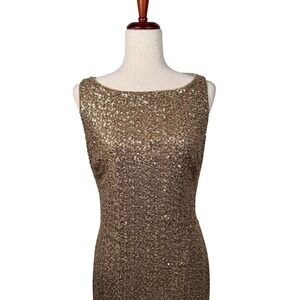 Lauren Ralph Lauren Gold Sequin Sleeveless Party Cocktail Dress Formal Holiday