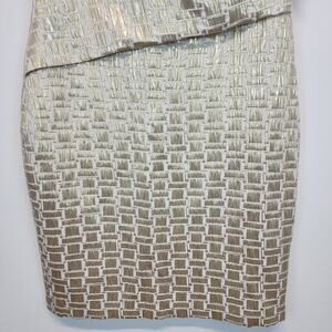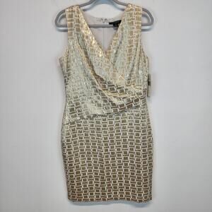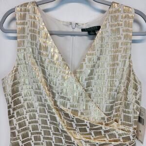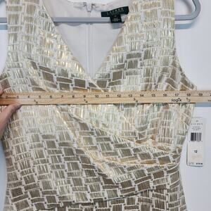 Lauren Ralph Lauren Gold Surplice Dress Size 12 Wide Strap Geometric Knee Length