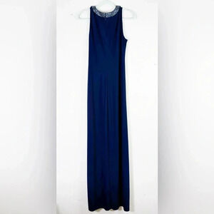 Lauren Ralph Lauren Evening Gown Maxi Dress w/ Embellished Rhinestone Neck Sz 14
