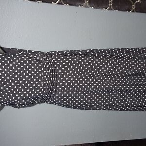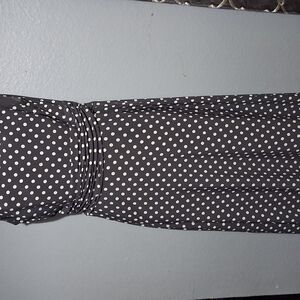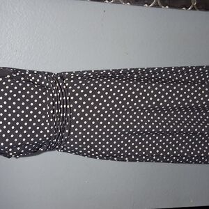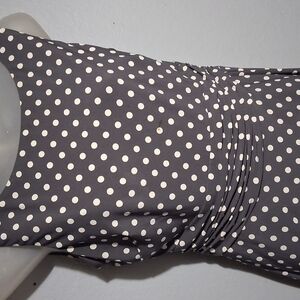 Chic gray dress with white polka dots. Sleeveless design. Perfect for any occasion.