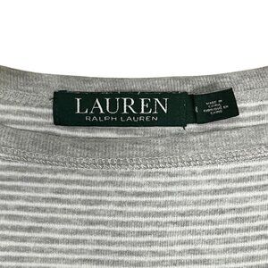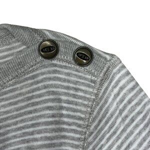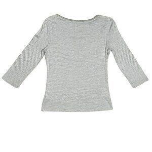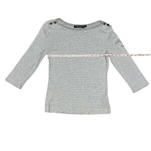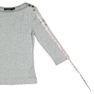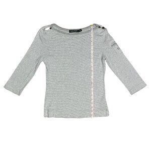 Lauren Ralph Lauren Gray Striped Nautical Button Shoulder Top 3/4 Sleeve Size M