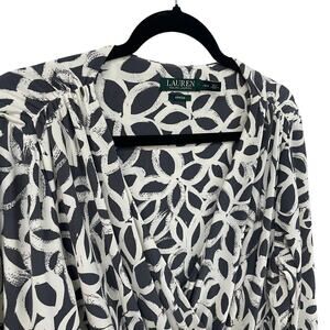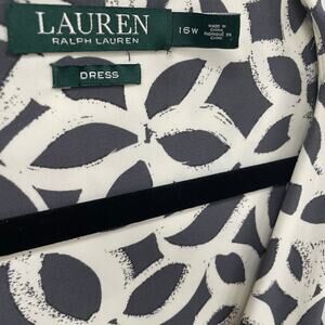 Lauren Ralph Lauren Gray White Floral Lowcut Gathered Waist Dress Size 16W