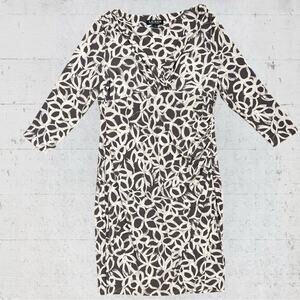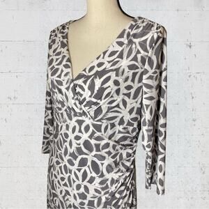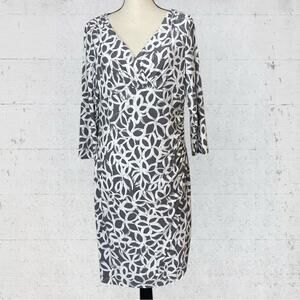 Lauren Ralph Lauren Gray White Printed Surplice Faux Wrap Dress Size 14