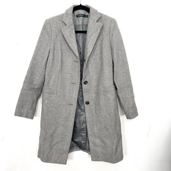 Lauren Ralph Lauren Gray Wool Blend Herringbone Coat Size 4