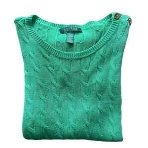 Lauren Ralph Lauren Green Cable Knit Sweater - Size L