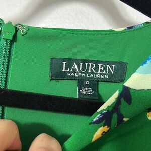 Lauren Ralph Lauren Green Floral Stretch Midi Dress Office Workwear A-Line 10