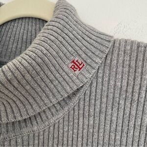 Lauren Ralph Lauren Grey Cotton sweater Ribbed Logo Turtleneck preppy old money