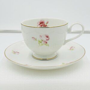 Lauren Ralph Lauren Hampton Blossom Footed Teacup Saucer Set Pink Floral. This set is in excellent condition, no chips, cracks or stains.