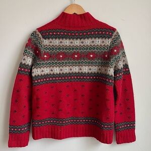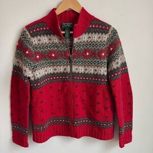 Lauren Ralph Lauren Hand Knit Lambswool Fair Isle Zip Cardigan Sweater SMALL