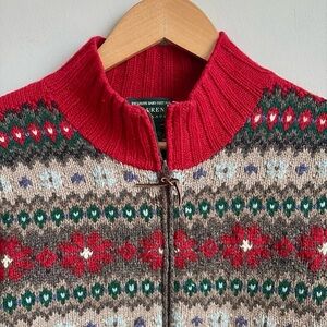 Lauren Ralph Lauren hand-knit Fair Isle zip cardigan sweater, likely from the late 1990s to early 2000s