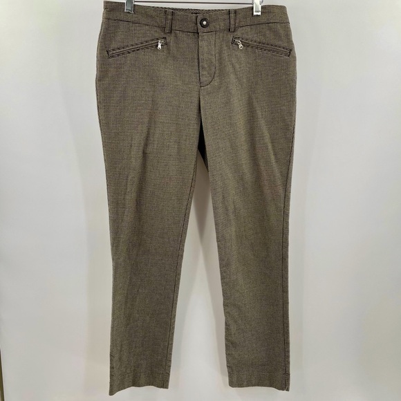 Lauren Ralph Lauren Herringbone Cotton Straight Leg Stretch Zipper Pockets Pant