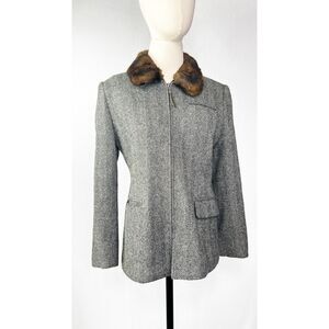 Lauren Ralph Lauren | Herringbone Silk Wool Jacket | Faux Fur Collar | Sz 6P