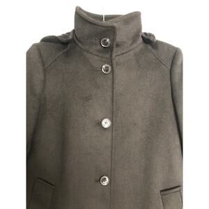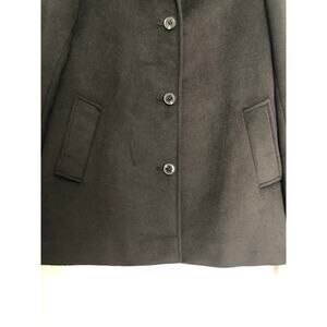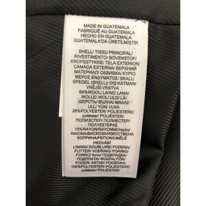 64% wool, 26% polyester, 10% rayon, dry clean, 5 front buttons, two pockets, lined.