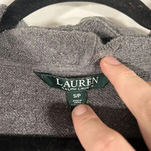 Lauren Ralph Lauren Hoodie Women's Small Grey Raised Print Drawstring Pullover