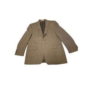 This blazer is perfect for any occasion, whether it's a business meeting, formal event, or travel. The brown houndstooth pattern adds a timeless touch to your wardrobe. The blazer is lined with viscose/rayon and has inner pockets for added convenience. Dry clean only.