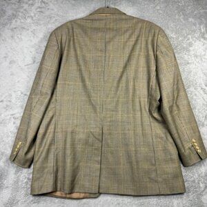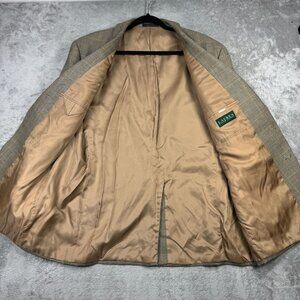 Lauren Ralph Lauren Houndstooth Plaid Wool Sport Coat Blazer Mens 46R Tan Preppy