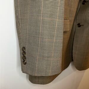 Lauren Ralph Lauren Houndstooth Sports Coat. 100% Wool. Made in India Size 46 Regular. 2 button front. Inside and outside pockets. Button Cuffs.
