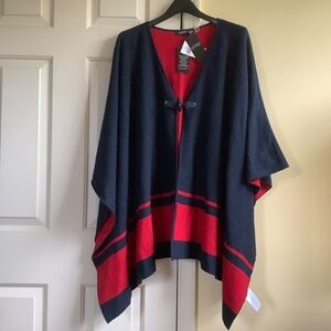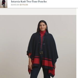 Lauren Ralph Lauren Intarsia-Knit Two-Tone Poncho Navy Red One Size Plus