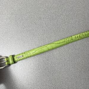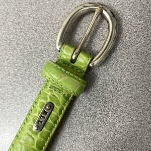Lauren Ralph Lauren Italian Leather Belt M Womens Green LRL Skinny Croc Embossed