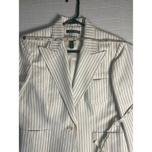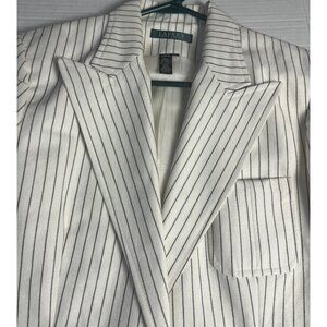 Lauren Ralph Lauren Ivory Pinstripe Blazer Jacket Sz 10 Lined Linen Blend