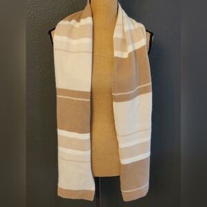 Lauren Ralph Lauren Ivory/Tan Striped Lambswool Scarf