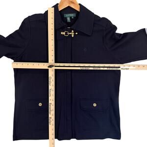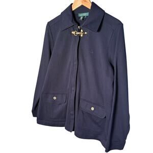 Lauren Ralph Lauren Jacket Gold Clasp 100% Cotton Navy Blue Womens L Classic