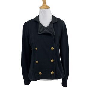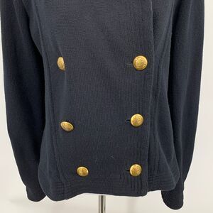 Lauren Ralph Lauren Jacket Women Medium Black Double Breasted Ribbed Satin Trim