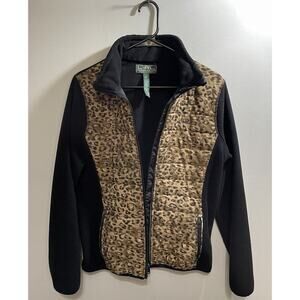 Lauren Ralph Lauren Jacket Womens Large Leopard Print Fleece Full Zip Quilted