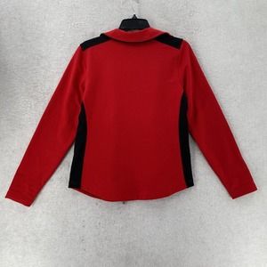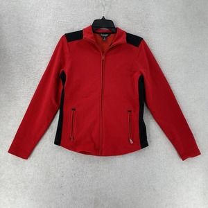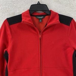 Lauren Ralph Lauren Jacket Womens Medium Red Pique Jersey Knit Full Zip Pockets