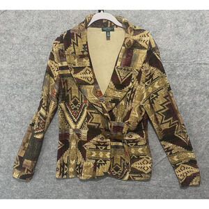 Lauren Ralph Lauren Jacket Womens Sz PL Brown Aztec Southwestern Buckle