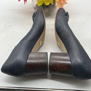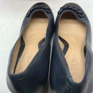 Lauren Ralph Lauren Jacksen Navy Blue Leather Pumps with chain accent Sz 10B.