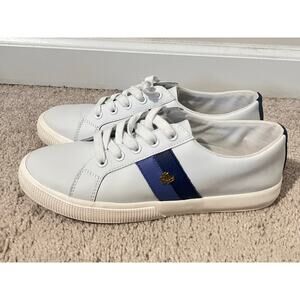 Lauren Ralph Lauren Janson II Leather Comfort Sneakers White/Blue Stripes 8.5