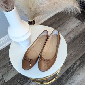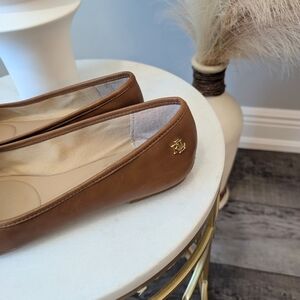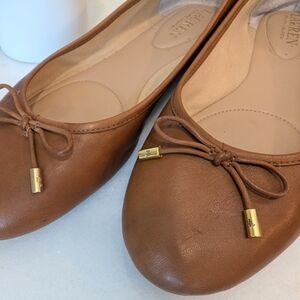 Lauren Ralph Lauren Jayna Brown Leather Flats with Bow Detail Sz 7.