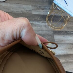 These Lauren Ralph Lauren flats showcase a classic design in smooth brown leather, featuring a charming bow detail on the top. With a minimalist silhouette and rounded toe, they offer a timeless style that complements any outfit. Perfect for versatile wear, these shoes are a practical addition to any wardrobe. see photos for flaws. has some wear from the metal bow at the front of the shoe and a little wear on the leather on the heel.