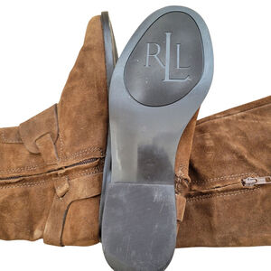 The boots have a medium width and a pull-on closure, making them easy to wear. The zipper accent and the Ralph Lauren logo on the buckle add a touch of sophistication to the boots. These versatile boots are perfect for travel, workwear, and casual occasions.