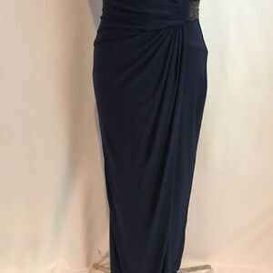 Lauren Ralph Lauren Jersey Gown Size 4 Navy Blue Rhinestone Embellishment V-Neck