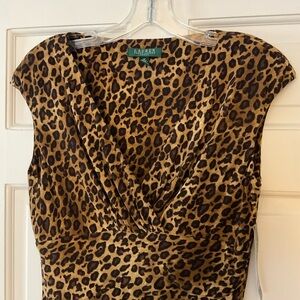 Lauren Ralph Lauren Jersey Sheath Dress Animal Print Faux Wrap Ruched Sz 12 NWT
