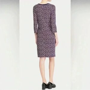 In perfect condition, Lauren Ralph Lauren Navy Blue Abstract Geometric 3/4 Long Sleeve Shift Dress