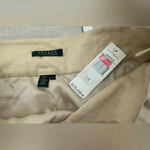 Lauren Ralph Lauren Khaki 100% Linen Wide Leg Pants Side Zip Lagenlook NWT 12