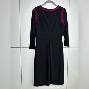 Lauren Ralph Lauren Knit Jersey Dress Black Burgundy Trim Size 4 Ruching
