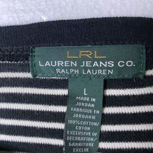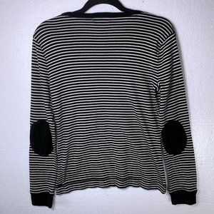 Lauren Ralph Lauren Womens Size Large Striped Top Zipper Detail Logo Elbow Patch