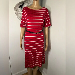 Lauren Ralph Lauren, L, red and white striped cuffed short sleeve midi/belt