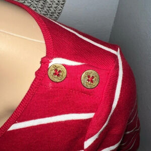 Lauren Ralph Lauren,L , red and white striped cuffed short sleeve midi with nautical rope belt and anchor design functional buttons with snap, on the left shoulder. size tag missing see website measurements for sizing of Large.