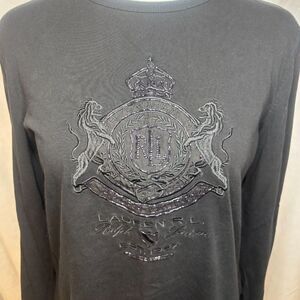 Lauren Ralph Lauren LRL Emblem Crest Bling Black Long Sleeve Top Vintage