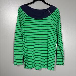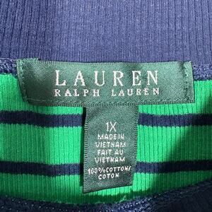 Lauren Ralph Lauren LRL Green Striped Nautical Preppy Knit Top - 1X - Plus Size