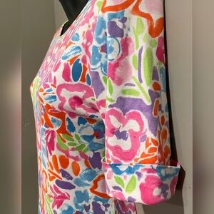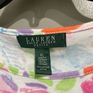 Lauren Ralph Lauren LRL Multicolor Floral Watercolor Cotton Top Shirt Petite Lg