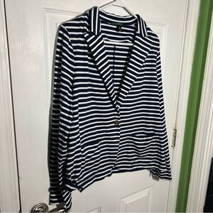 Lauren Ralph Lauren LRL Navy Striped Cotton Blazer Size XL Gold Button Details