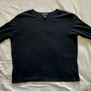 Ralph Lauren T-Shirt Women's x-Large Black Metallic stud "LRL" Logo. Long Sleeve Pullover. In excellent condition.