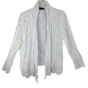 Lauren Ralph Lauren Lace Eyelet Embroidered Open Jacket Cardigan XXL White